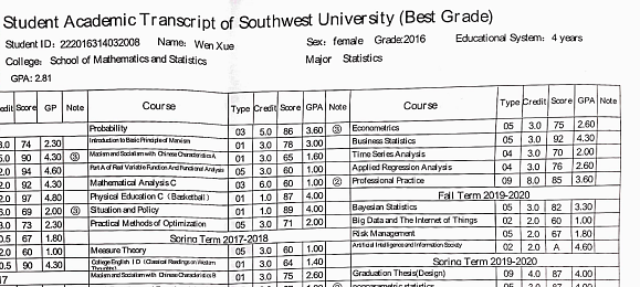 π My undergraduate average score was 78.1, primarily due to my early-stage adjustment to university studies.