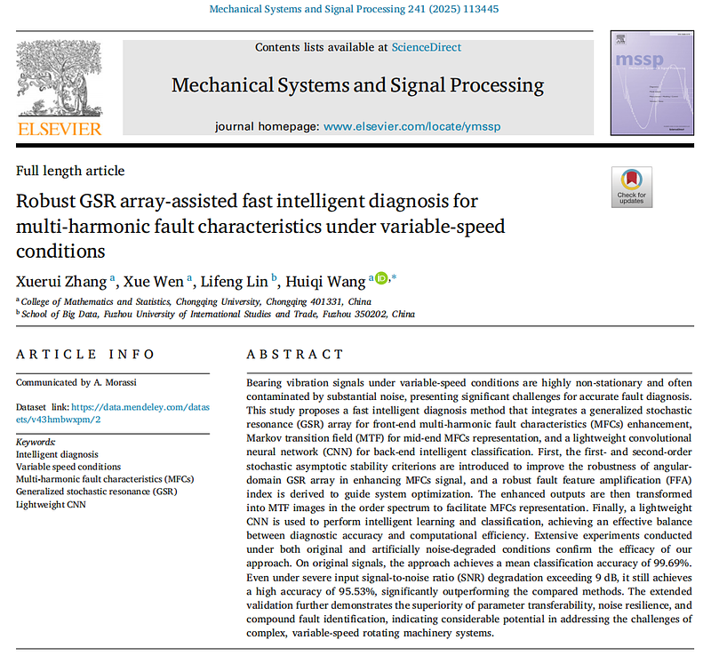 Robust GSR array-assisted fast intelligent diagnosis for multi harmonic fault characteristics under variable-speed conditions.